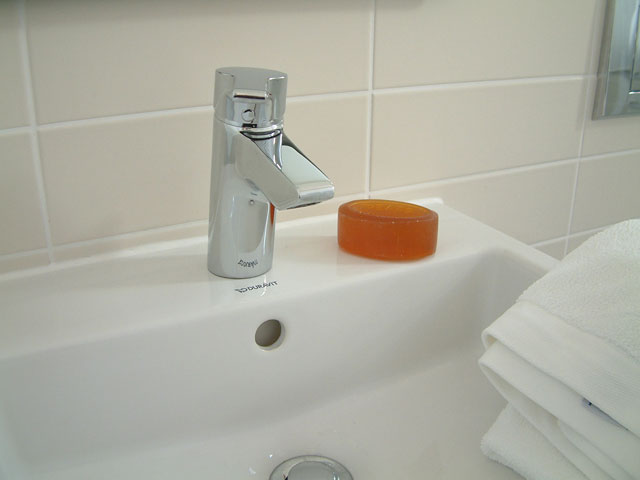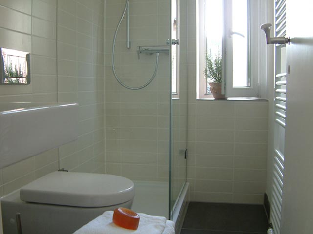 große Dusche, Glasabtrennung, Handtuchwärmer, Fön